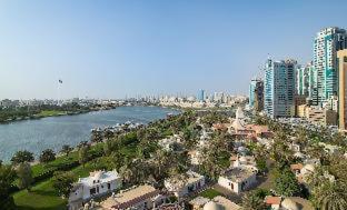 A resort styled like a Mediterranean village on Sharjah’s lagoon.